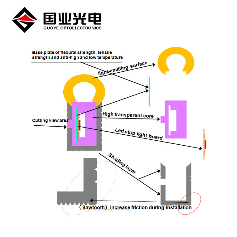 فيما يلي نقطة القطع الموجودة على الجزء الخلفي من شريط النيون ، من السهل رؤيتها ويمكن قصها من النقطة. يمكننا تقديم غطاء طرفي وكابل ، إلى شريط ليد لحام بطول مختلف ، وتزويده بالطاقة للعمل.